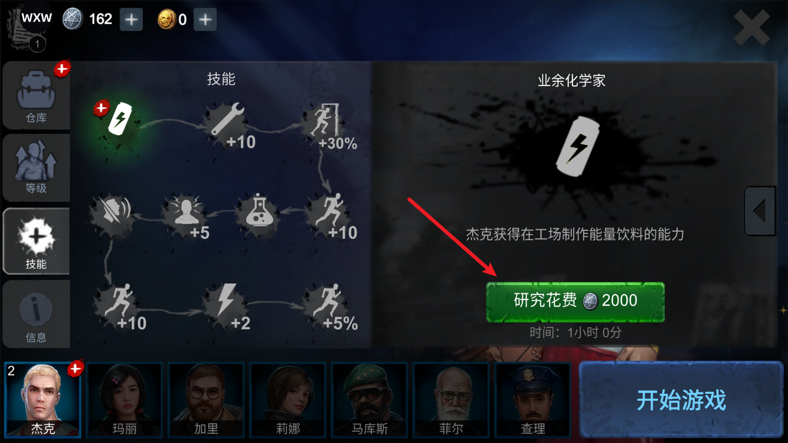 2、升级后,我们还能解锁技能,然后消耗银币学习。