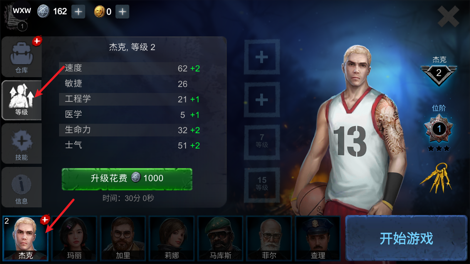 1、进入幸存者当中,找到对应角色,然后点击等级,这里可以消耗银币进行升级。