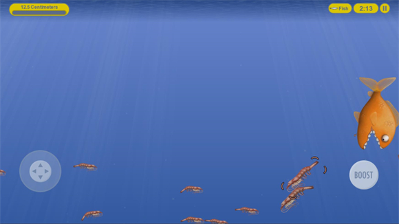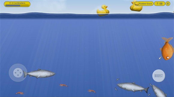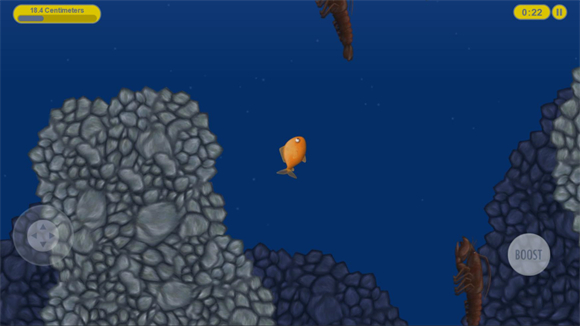 3、进入关卡后左边控制小鱼移动,右边控制加速。