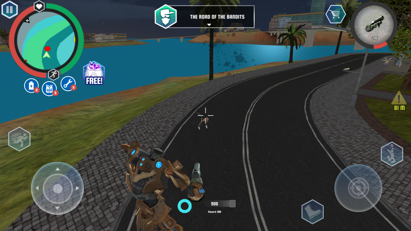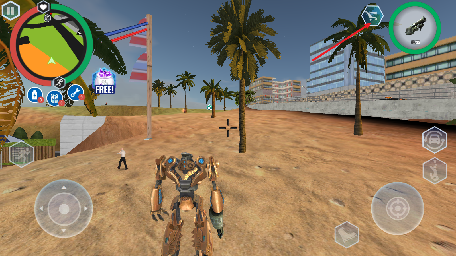 1、游戏中左侧的摇杆控制角色移动,左侧的按钮还能让你加速奔跑。