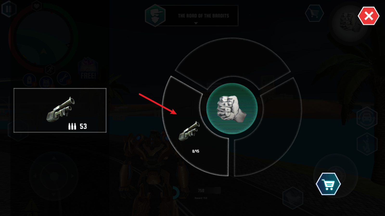 7、点击右上角的拳头,我们可以在这里切换武器。