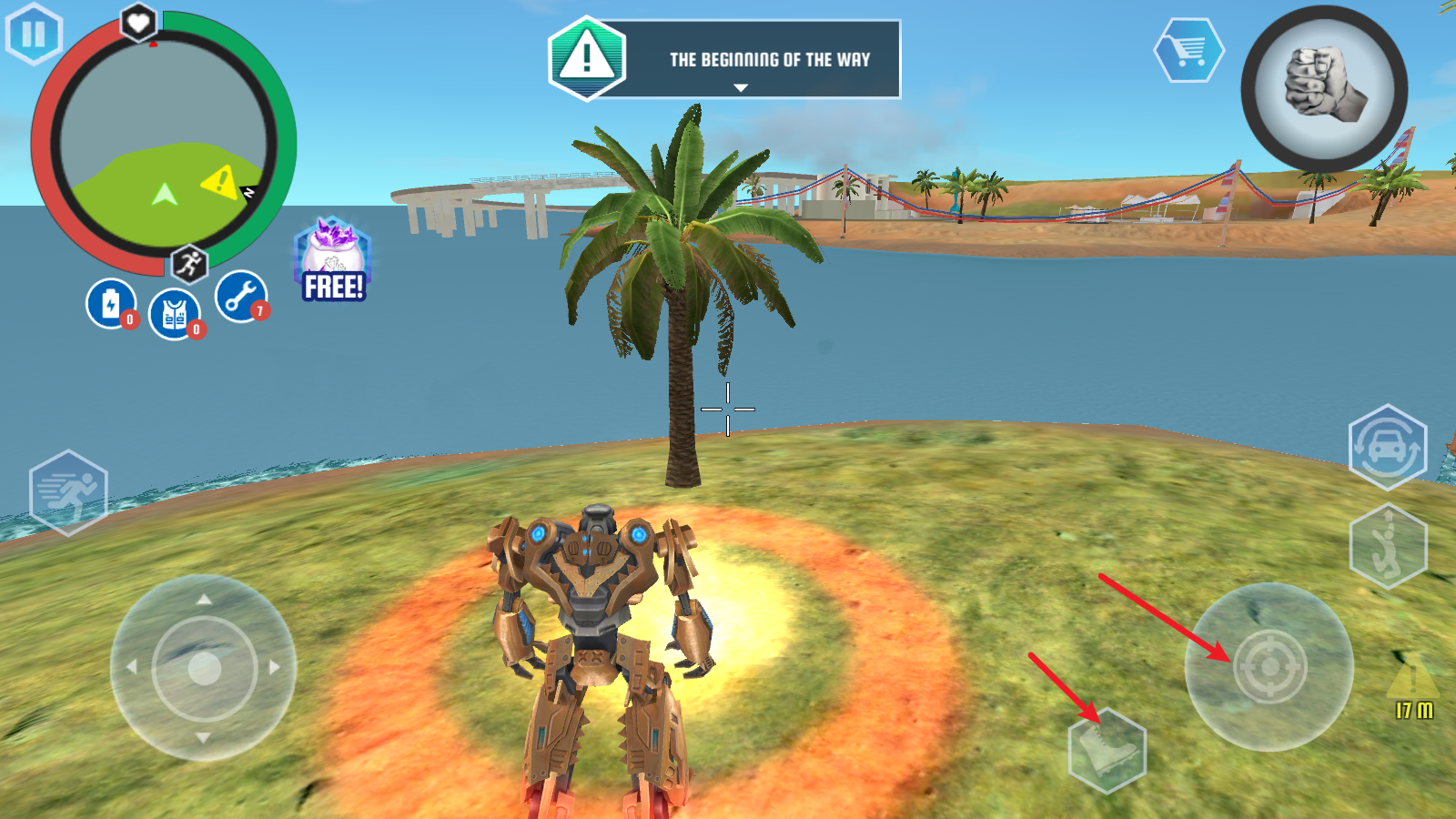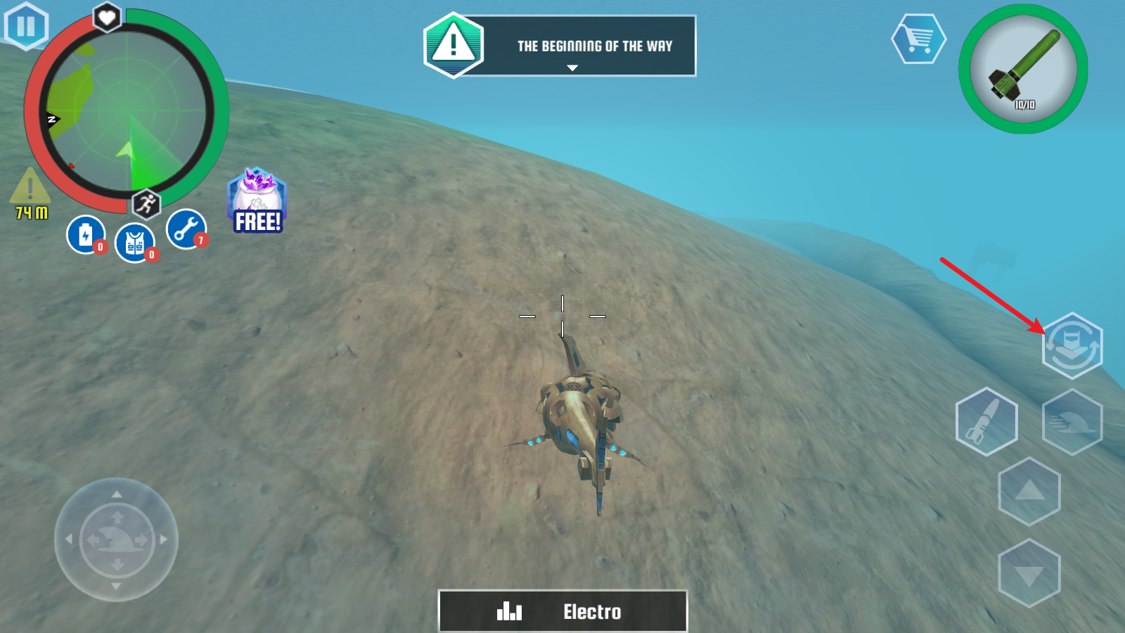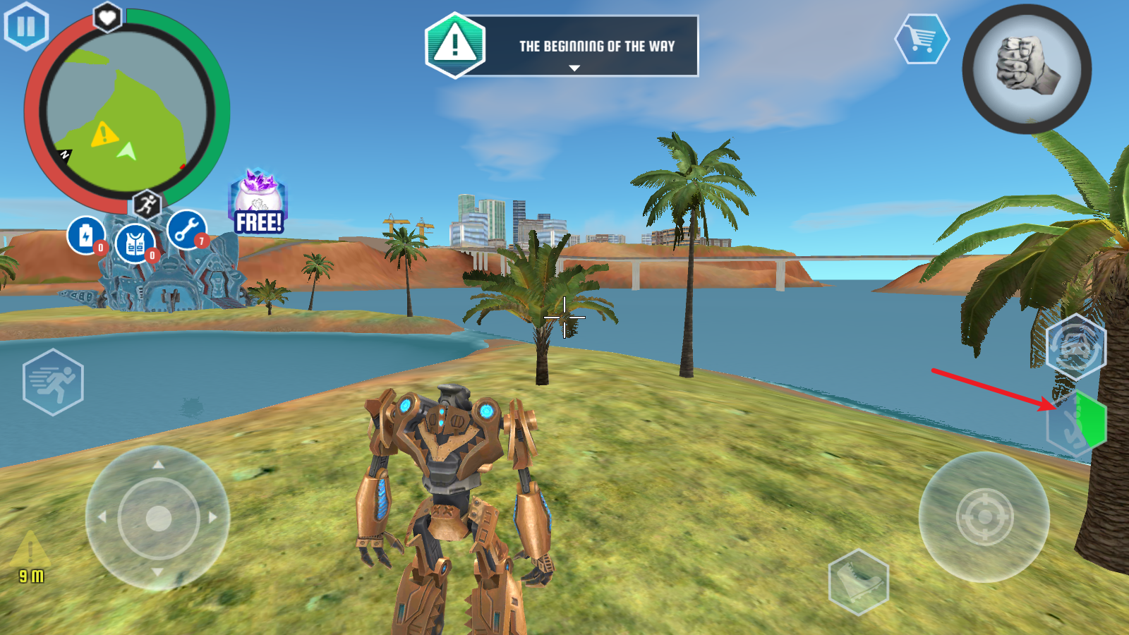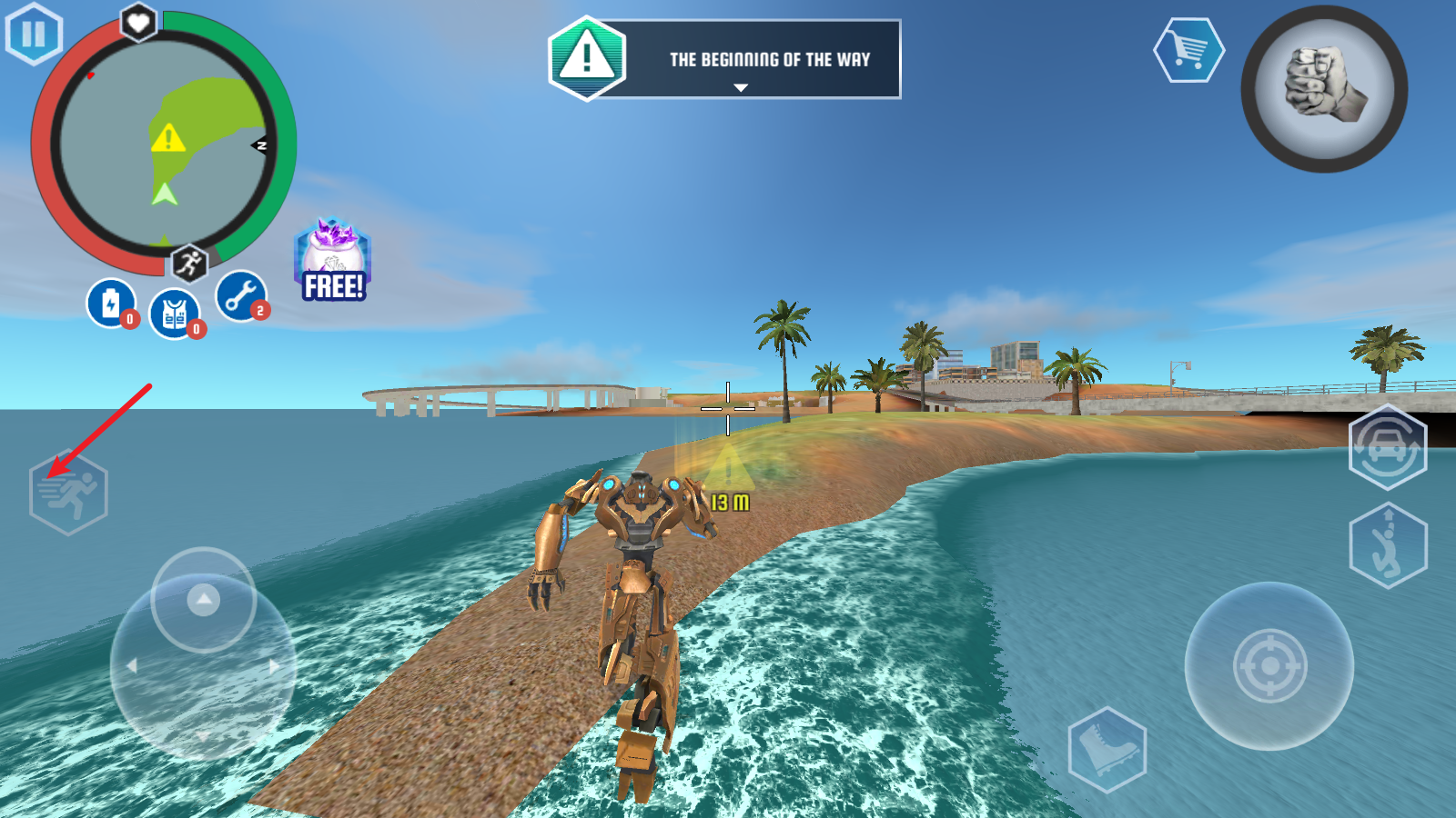 4、我们的角色是鲨鱼机器人,所以变换为鲨鱼形态后可以潜入水底。