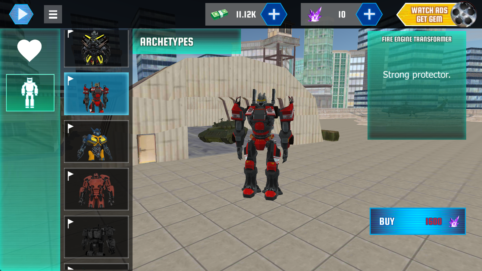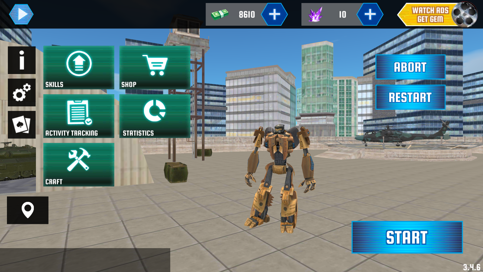3、除了武器外,还有各种炫酷的机器人皮肤可以使用,如直升机、跑车、坦克等等。