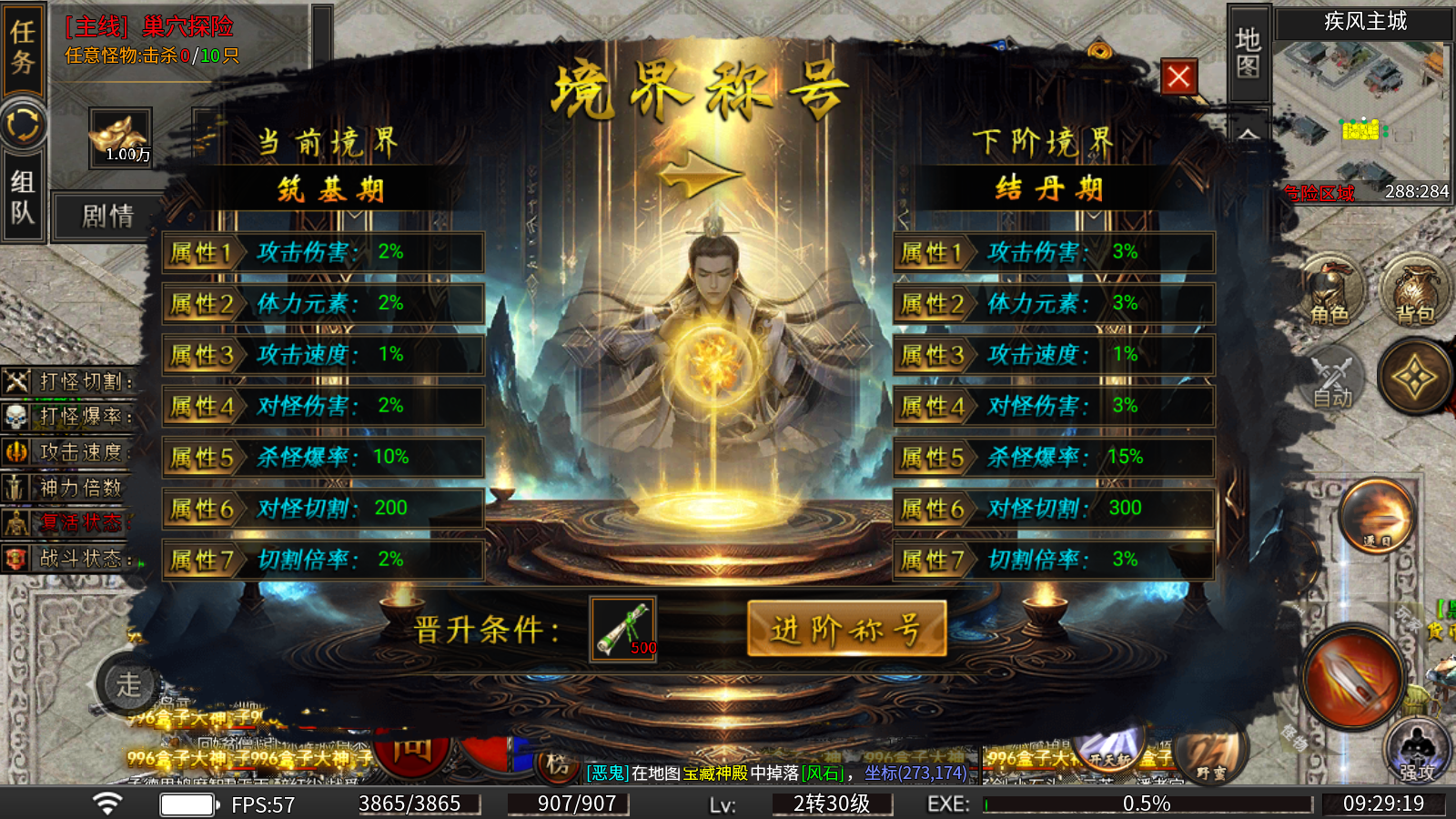 5、充值和主线剧情奖励的红包风卷,强烈建议提升境界称号,攻速+全方位提升。