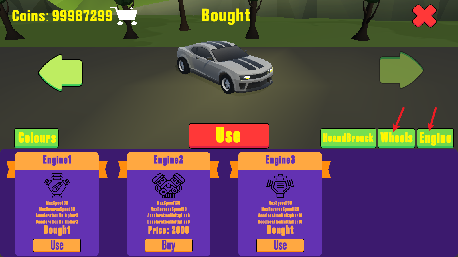 3、玩家可以自由的改装自己的赛车,配色、轮胎、引擎都能更换,用最炫酷的赛车去完成挑战!