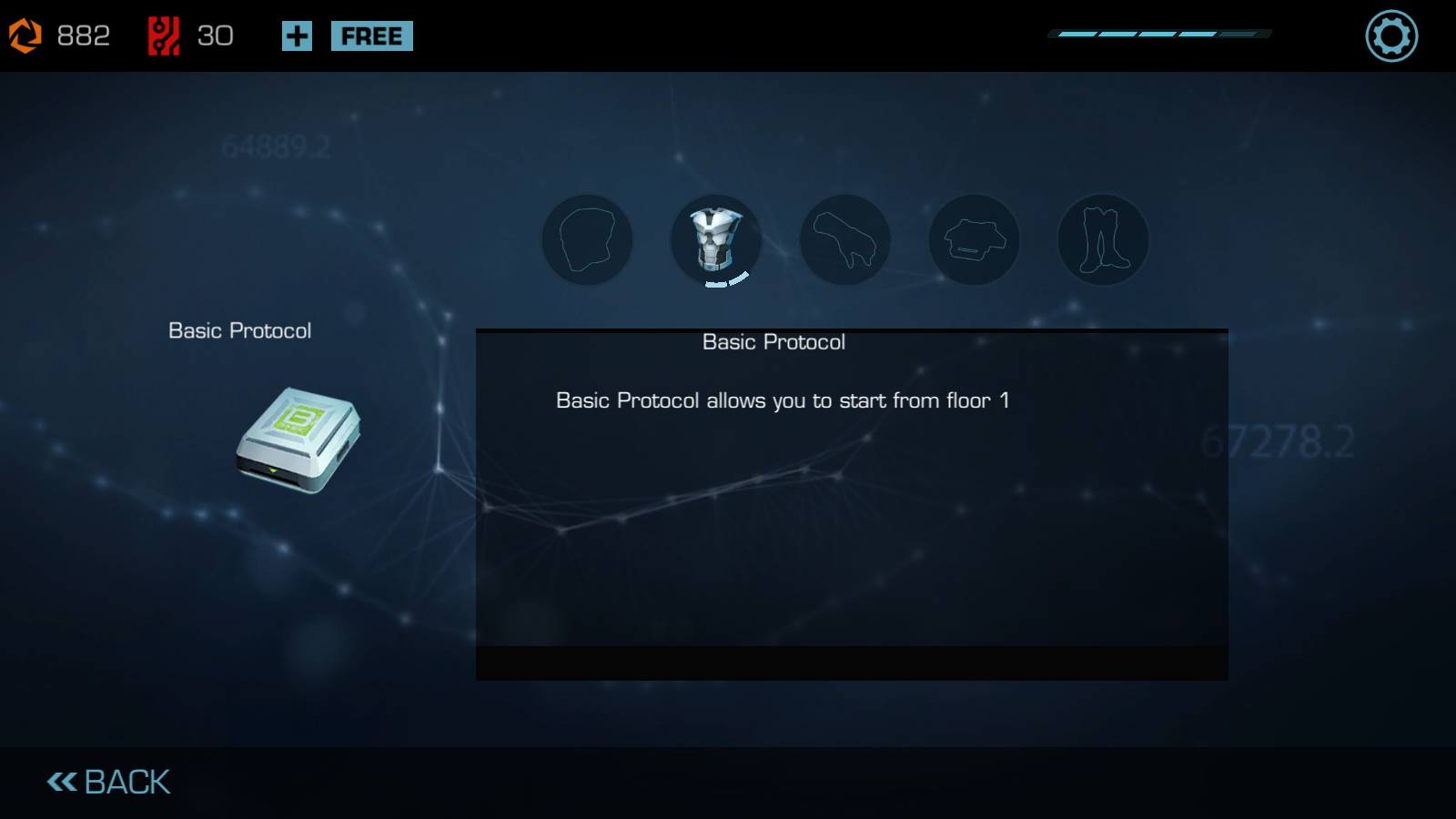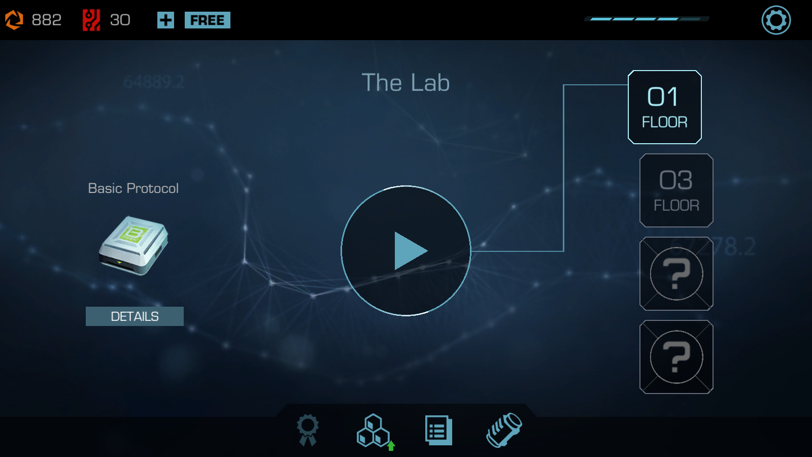 5、回到主界面,点击左侧的芯片即可进入到装备界面,可以查看自己装备的功能,并进行升级。