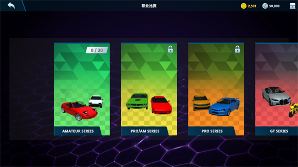 3、职业比赛可以让你驾驶不同等级的车辆参加比赛。