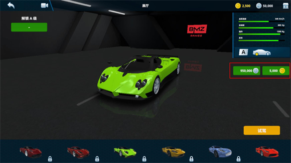 3、选择喜欢的车辆后右侧会出现具体的价格,消耗对应的金币就可以解锁车辆。