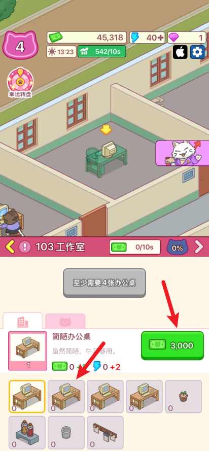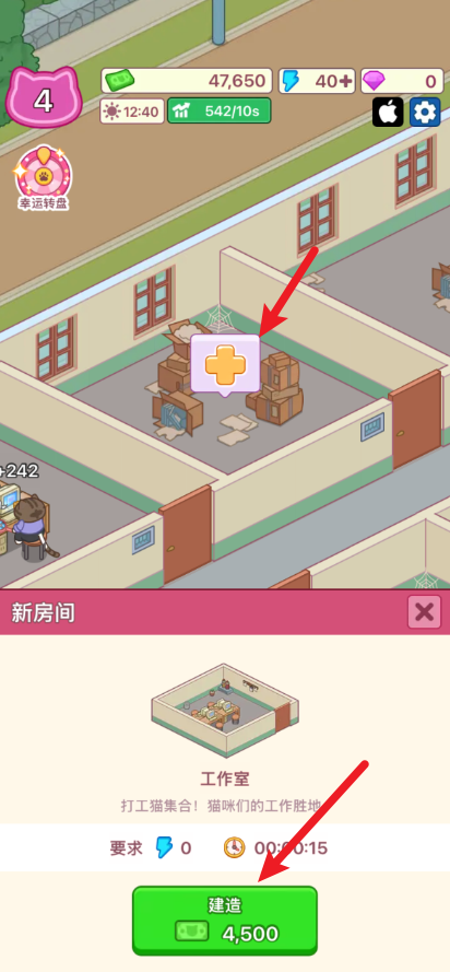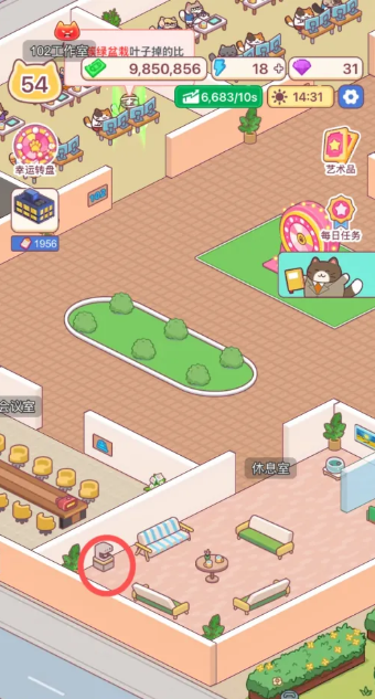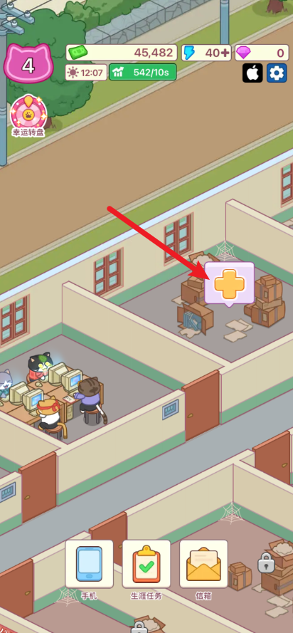 1、游戏中,我们可以点击空闲的办公室进行建设。