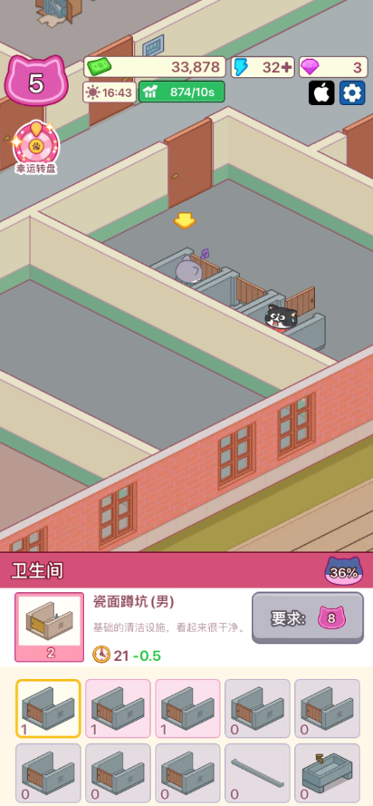 7、除了办公室外,我们还可以修建卫生间等设施,来提高猫咪们的工作效率。