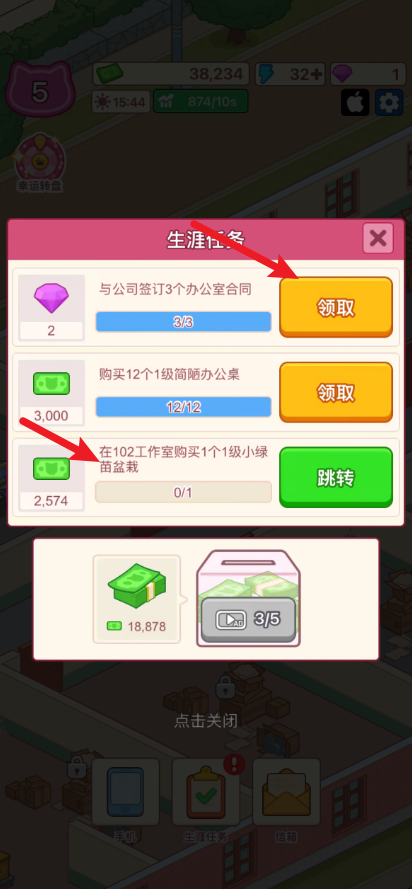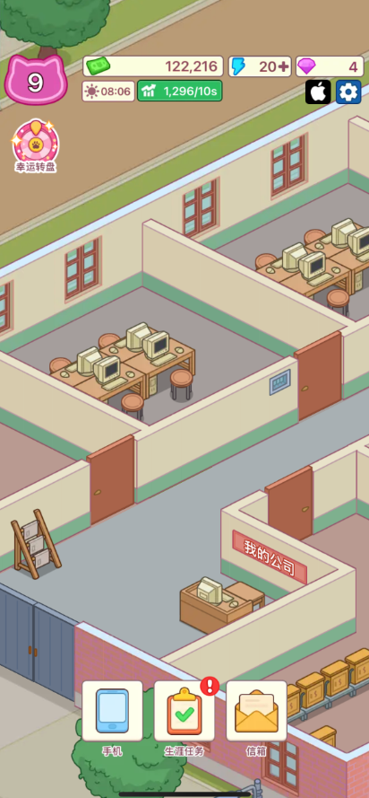 1、游戏中需要你运筹帷幄,打造出一间间办公室,招募人才来完成不同的工作,赚取更多的资金。
