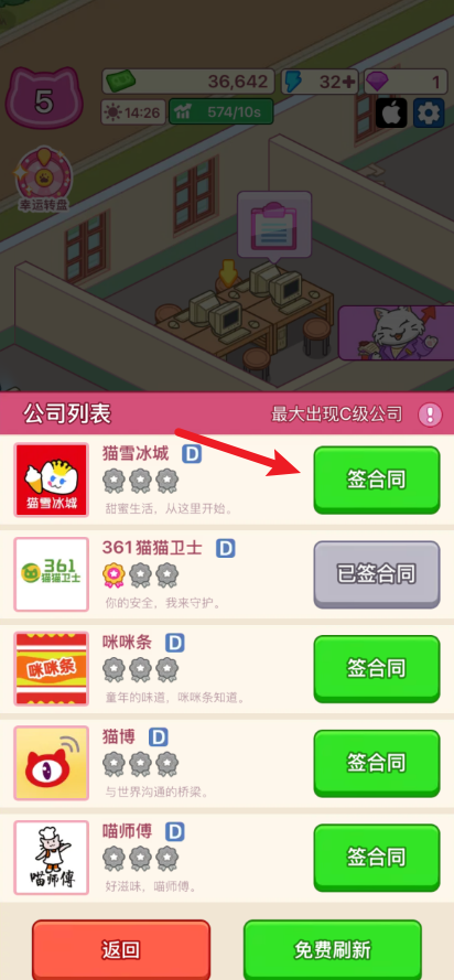 5、签订了合同之后,猫咪们就会前来工作,为你赚取资金。