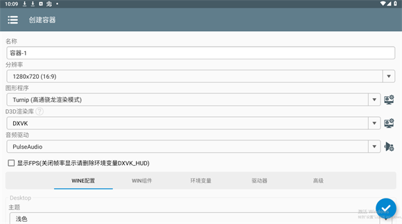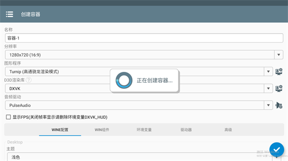 4、设置好参数后,点击界面右下角的勾选标记来完成容器的创建。