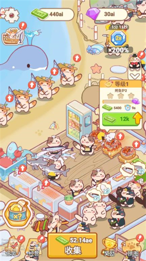 1、更多渔场设施等你去解锁,丰富的猫咪可以让你去招募。