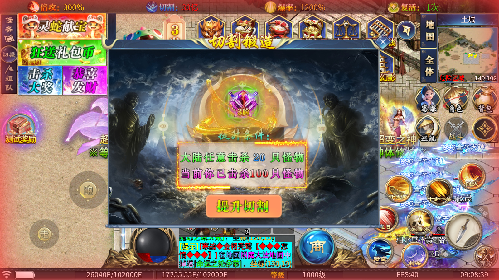 1、切割锻造:本服通过打怪就能锻造切割,每一级都能够提升大量属性,并且大幅提升切割伤害。