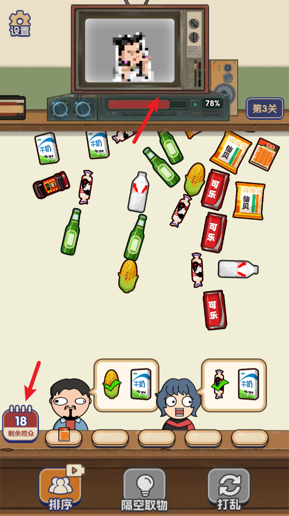 5、游戏上方可以查看目前的关卡进度,左下角也能查看剩余的客人数。