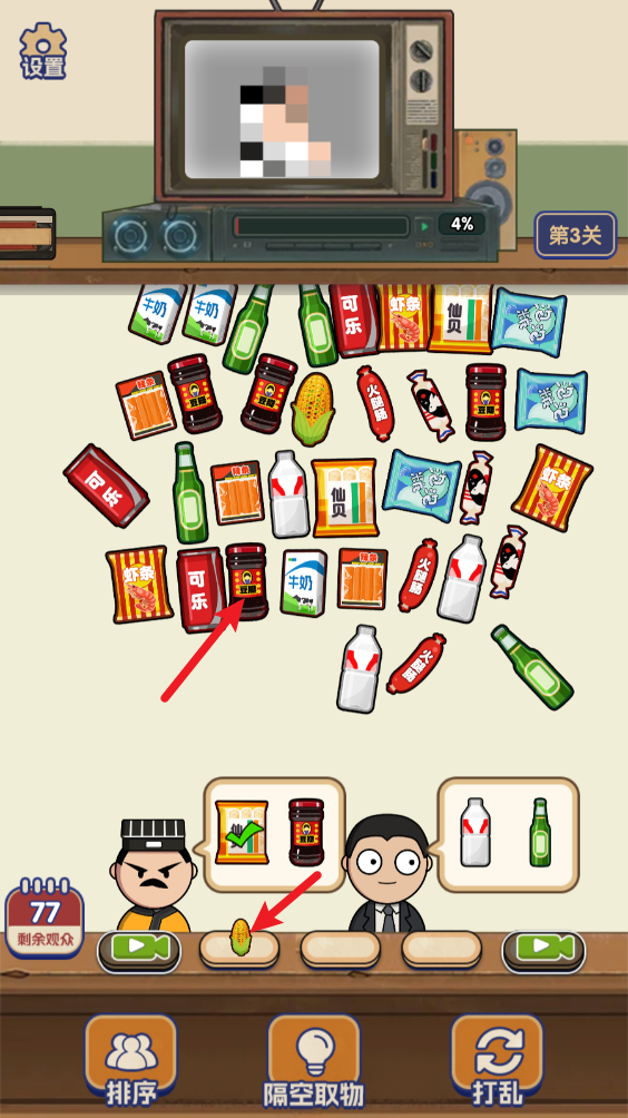 1、游戏中我们需要将对应客人需要的物品从上方找出来,点击即可。