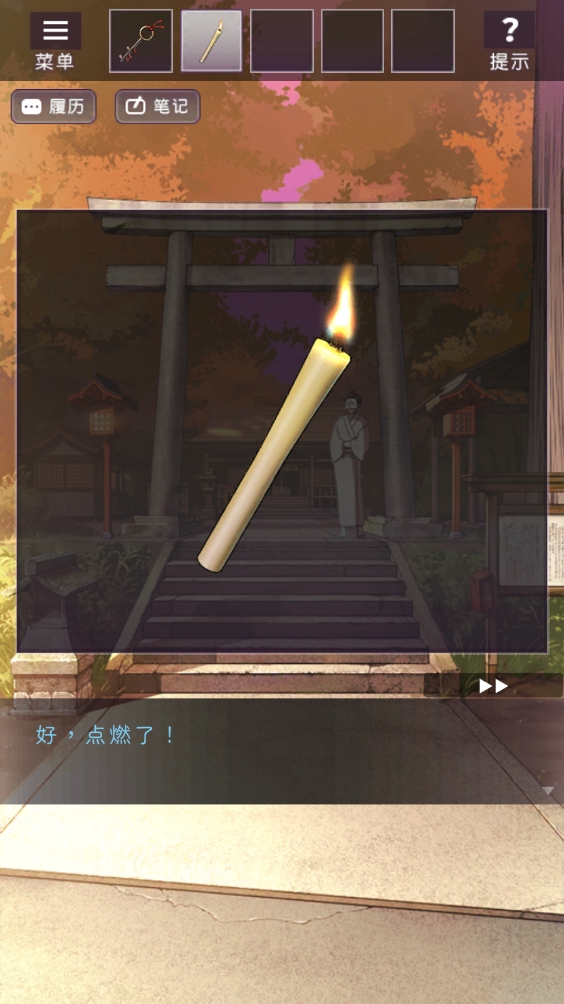 7、点击道具就可以使用了,我们先点击蜡烛,然后点击火柴就能将其点燃了。