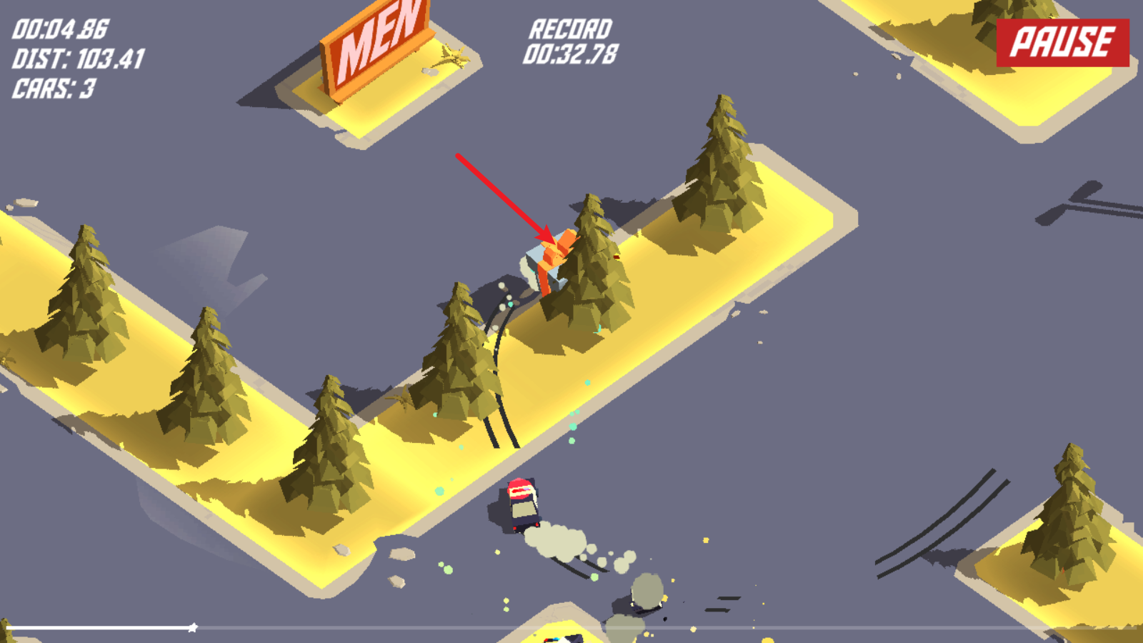4、注意不要撞到树木或者其他的小车,这样会直接失败。