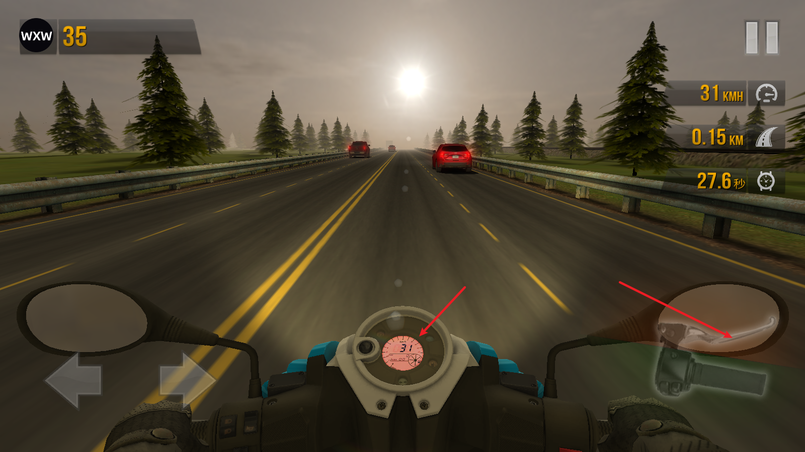 3、首先来熟悉操作,点击右侧的握把即可进行加速。
