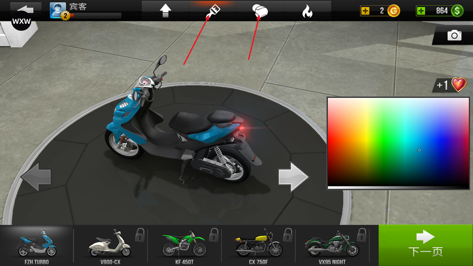 4、选择其他的选项还能调整摩托的配色,以及骑手的手套。