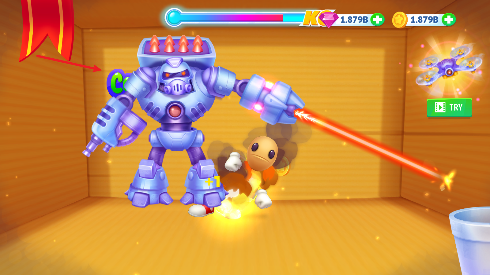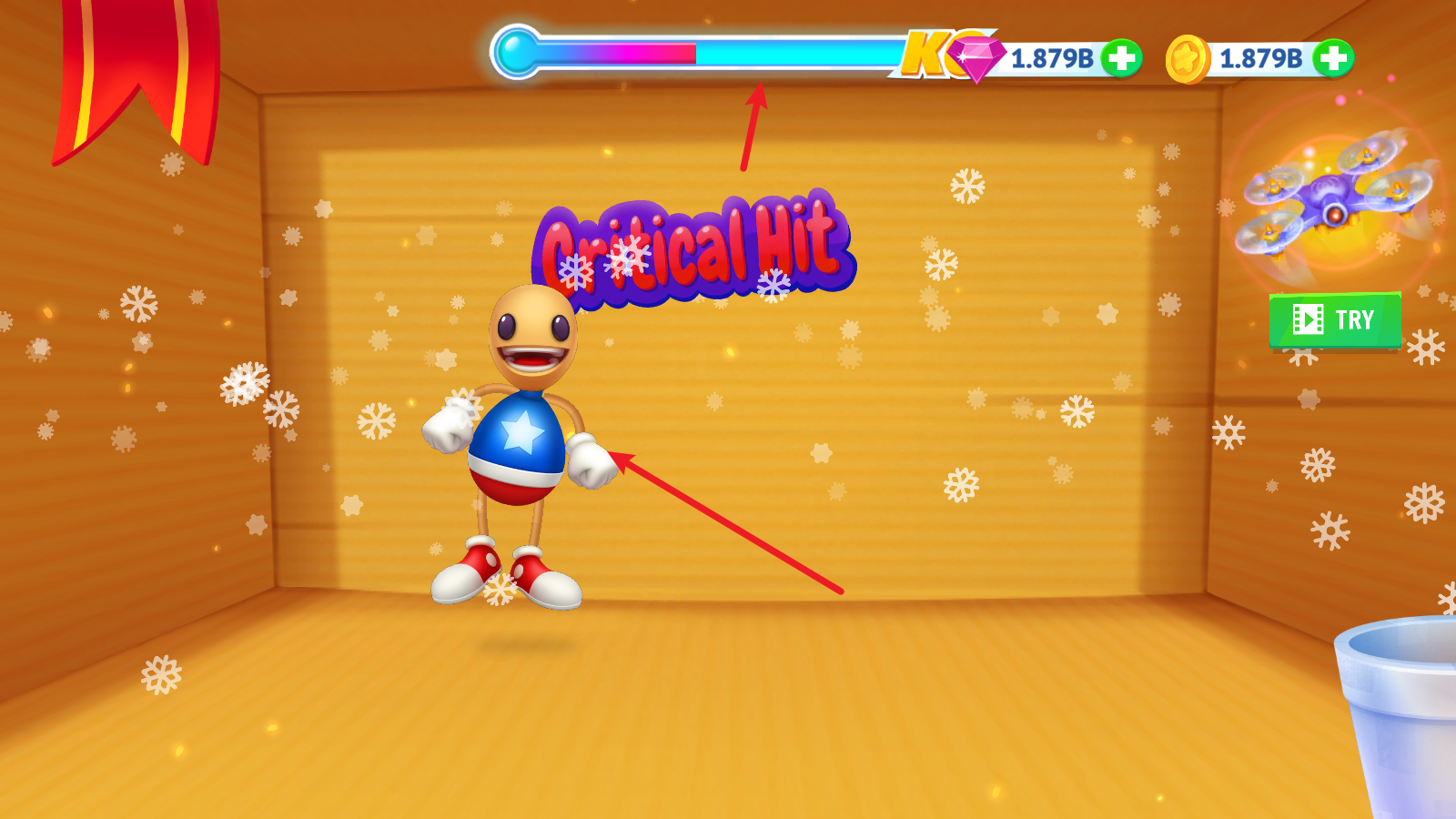 3、不用担心木偶人被击打坏,他可以无限的复活,尝试用各种武器去击打它!