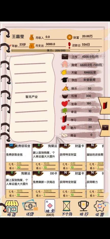 1一款纯文字形式的游戏,初始资金三千元,想购置房产就得靠大胆操作!