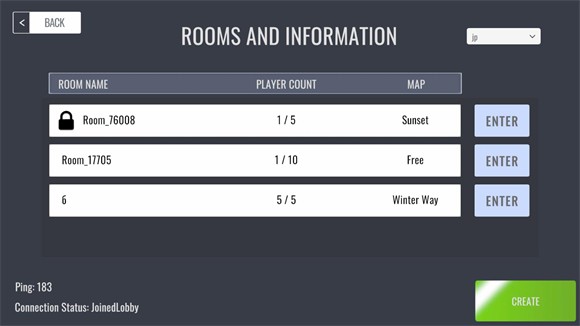 3、点击create后你可以创建属于自己的房间,你可以自定义房间地图和玩家数量,甚至还可以对房间施加密码。