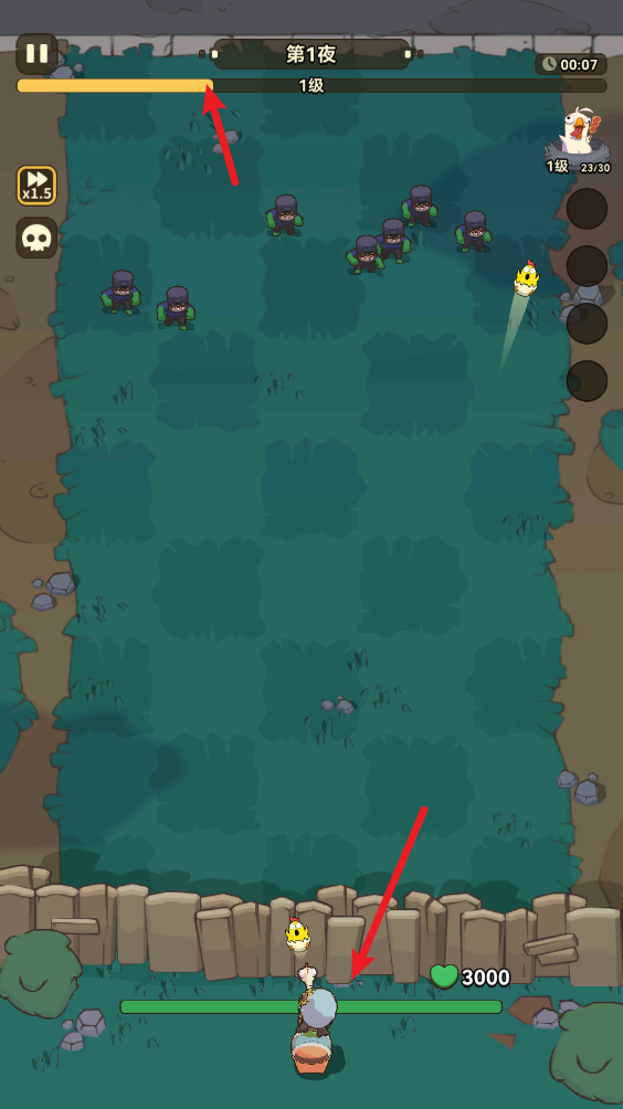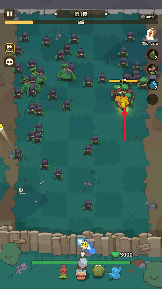 1、初始情况下会有一名角色进行攻击,击杀僵尸就可以获得经验增加等级。