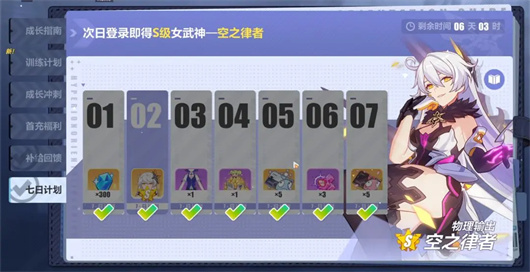 1、新手成长指南:共有九个阶段,每阶段有800水晶。完成所有阶段共可获得800*9=7200水晶,10张家园补给卡,1张扩充补给卡,角色圣枪卡莲,自选s级女武神福石
