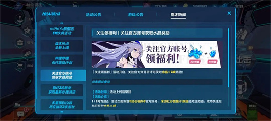 完成指定活动任务可领取爱莉希雅「真我 · 人之律者」角色卡。