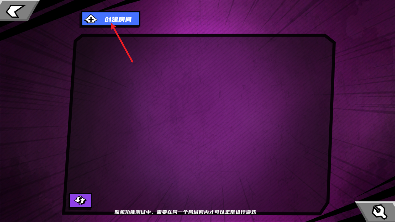 2、然后点击这里的创建房间,由于目前功能测试中,需要在同一个WIFI下才可以联机哦!