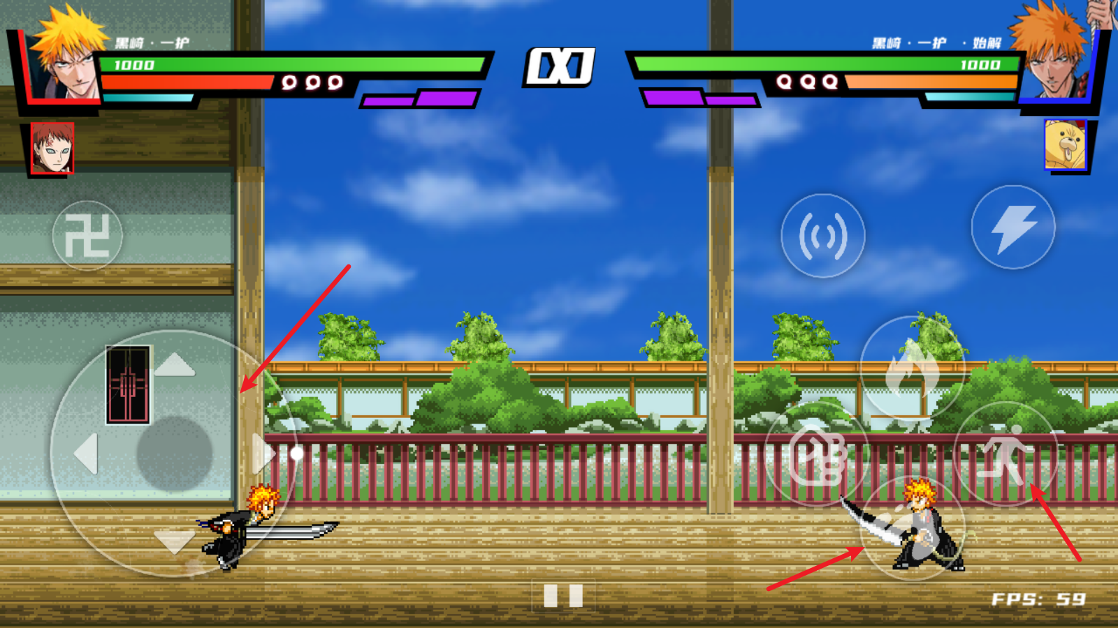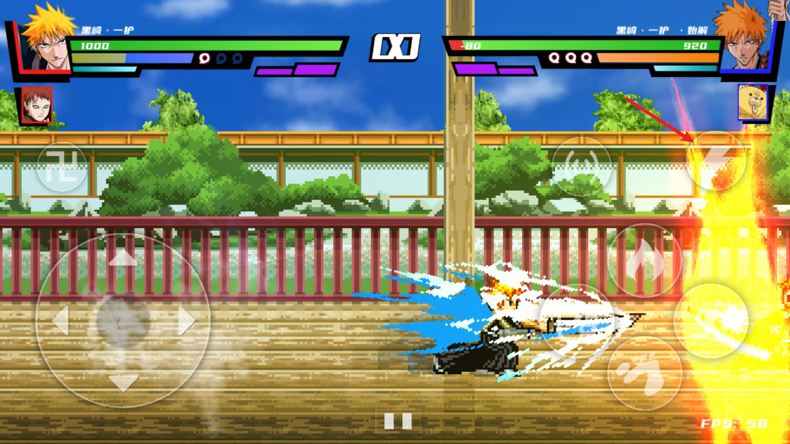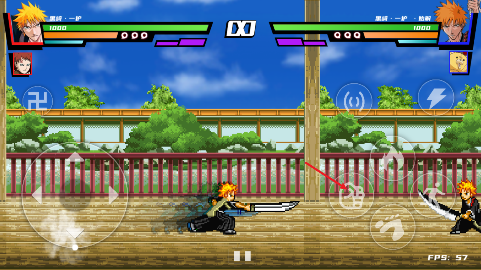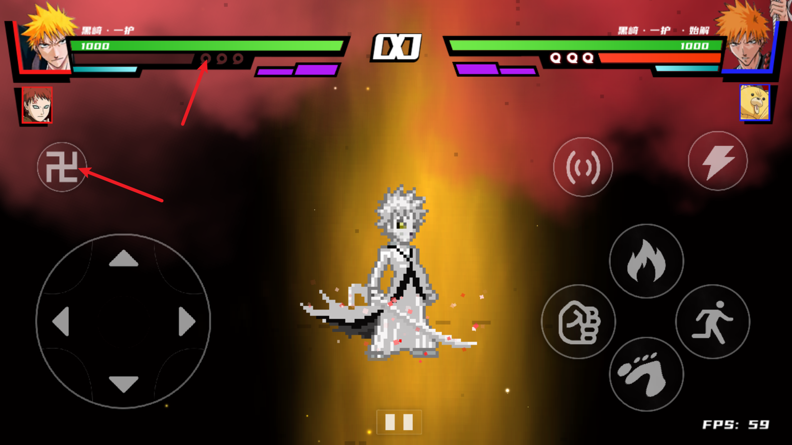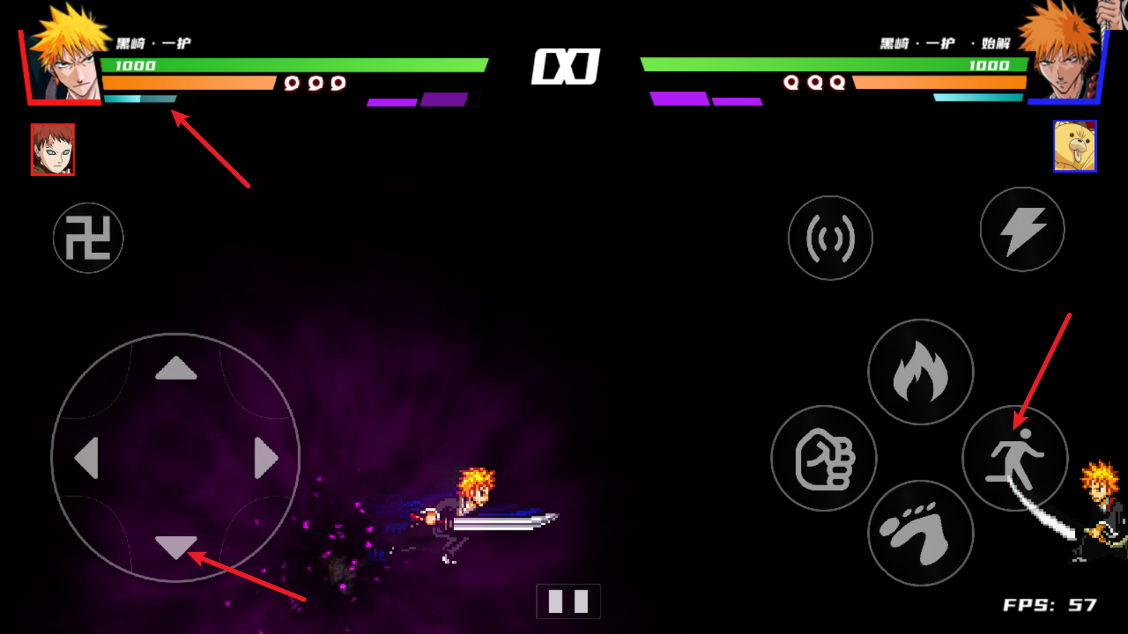 5、右侧的拳头为普通攻击,按住上或者下方向键再进行攻击,还会有不同的攻击方式。