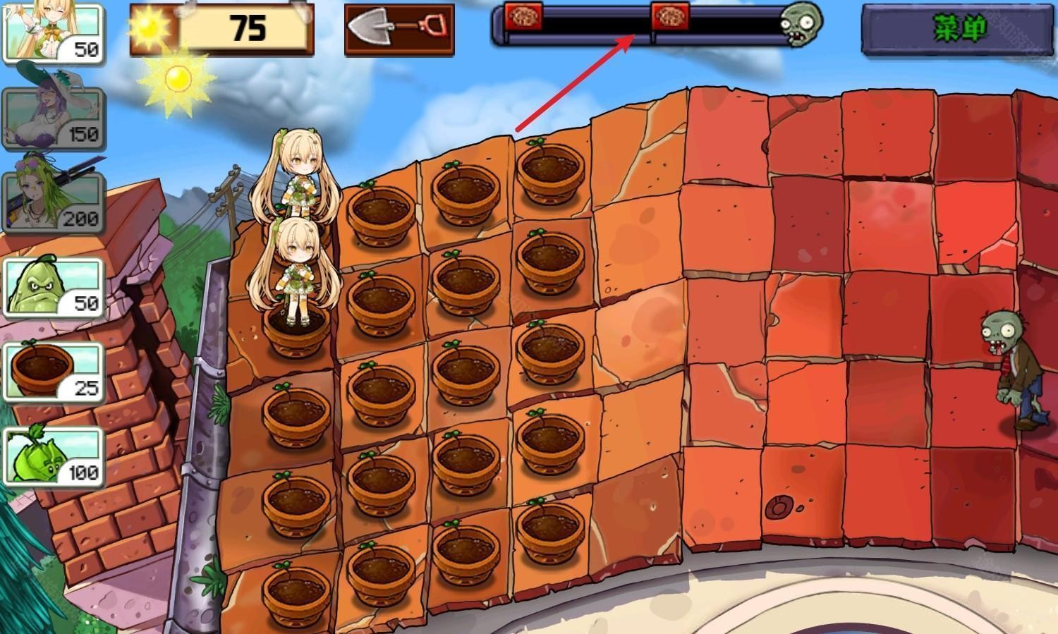 4、上方会显示僵尸进攻的进度,当到达最后一波后,成功抵御即可过关。