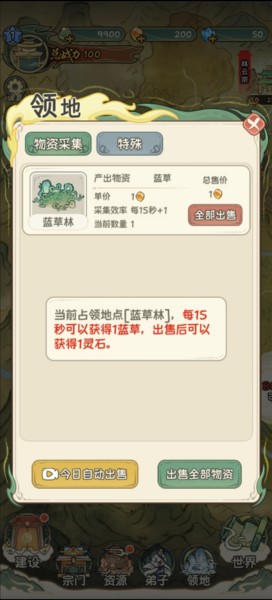 3、有了弟子后我们还需要去占领领地,而领地会为我们带来收入。