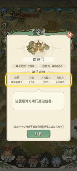 4、当我们什么都不缺的时候就可以选择讨伐附加的宗门了。