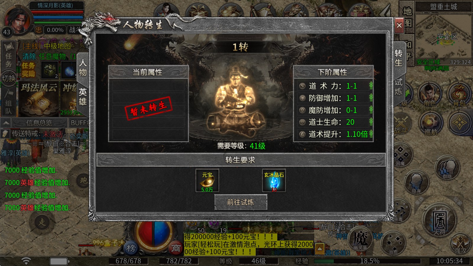 3、转生系统:消耗元宝和玄冰晶石进行提升,可以成倍提升对应职业的属性。