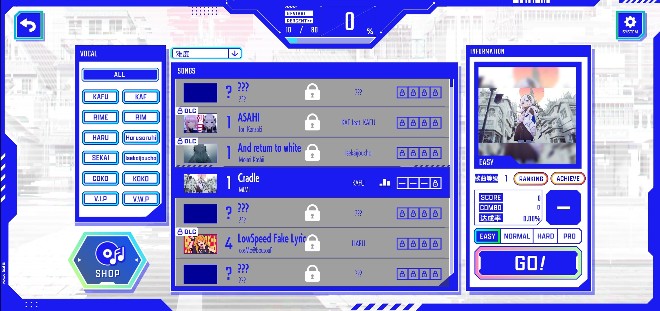 3、接着选择要挑战的曲目,以及难度,点击GO开始;