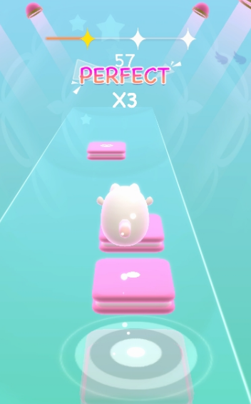 1、玩家需滑动手指,让猫咪精准落在与音乐节拍对应的图块中心位置。