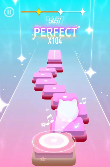 《跳舞的猫》(Dancing Cats)是一款将音乐节奏与萌系角色互动巧妙融合的轻松休闲音乐游戏,整体风格可爱又有趣。在游戏里,玩家会和一群呆萌软萌的猫咪伙伴开启一场充满韵律的奇妙旅程——跟着音乐的节拍轻盈跃动,在活力四射的旋律中,沉浸式感受独特的律动魅力。 玩法设计上,游戏着重平衡了节奏感与趣味性:轻快流行的背景音乐循环流淌,很容易让玩家不知不觉就沉浸在节拍的律动里;操作方面更是简洁直观,只需滑动屏幕就能操控猫咪移动,帮助它们精准踩中每一个节拍点。在挑战节奏掌控力的过程中,还能体验到打击感满满的操作乐趣。