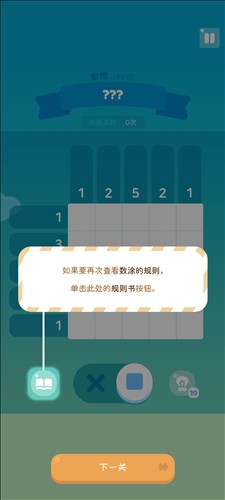 3、要是一时记不清数涂的规则也无需担忧,点击屏幕上的“规则书”图标就能再次查看玩法介绍。