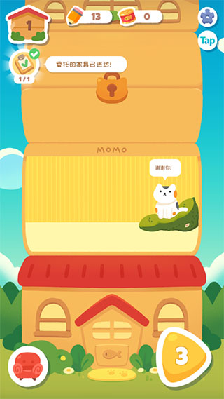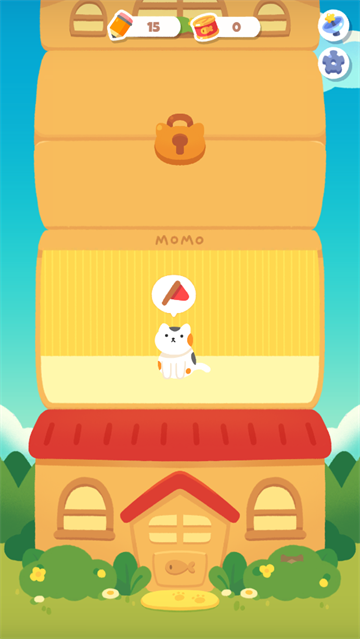 2、主动挑战关卡,为猫咪打造温馨小屋,精心布置猫咪房间。