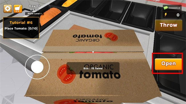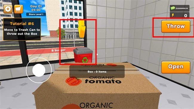 走到垃圾桶旁边,盖子会自动开启,点击“Throw”按钮就能丢弃空箱子了。