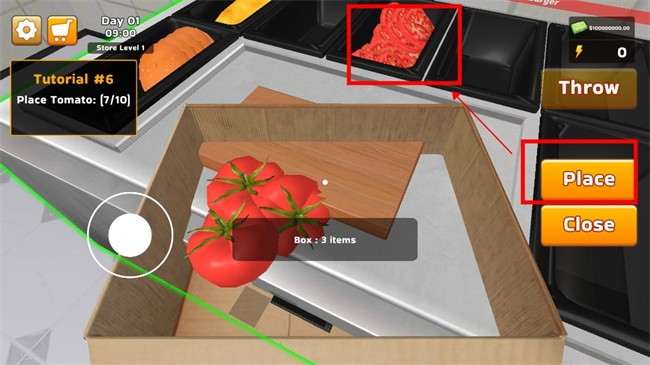 像番茄这类食材,先点击“Open”,再点击“Place”,就能把它切好并放入备菜框中。