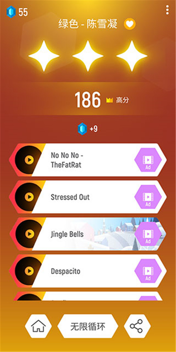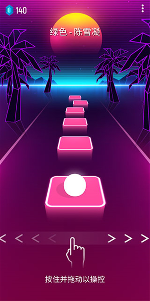 1、挑选你喜爱的歌曲开启挑战。按住屏幕并拖动,以此来控制小球的运动路径。