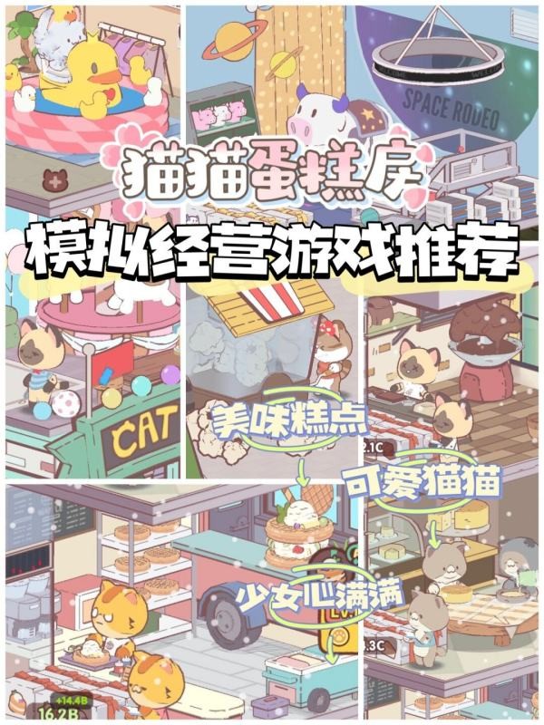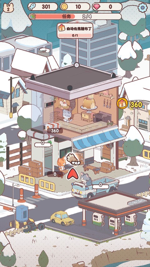 1、我的猫塔是一个猫咪主题的甜品塔工厂,治愈系画风超舒适。