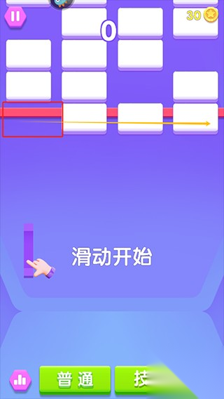 2、玩家需在屏幕上滑动操作,把砖块放到行列的空白位置,以此消除第一列的砖块。