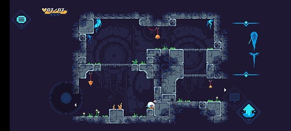 5、玩家需在地图中自由探索移动,小心隐藏的关卡障碍和陷阱,时刻注意左上角的生命值。