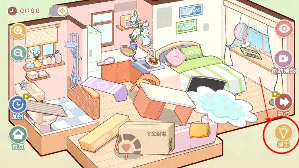 6、点击提示后,玩家就能依据收纳建议更快速地完成关卡挑战。