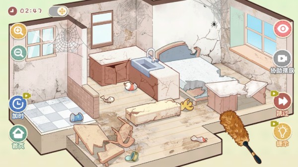 4、以第一关的“搬家日记”作为参照范例,玩家需要把杂乱肮脏的新家彻底打扫干净。